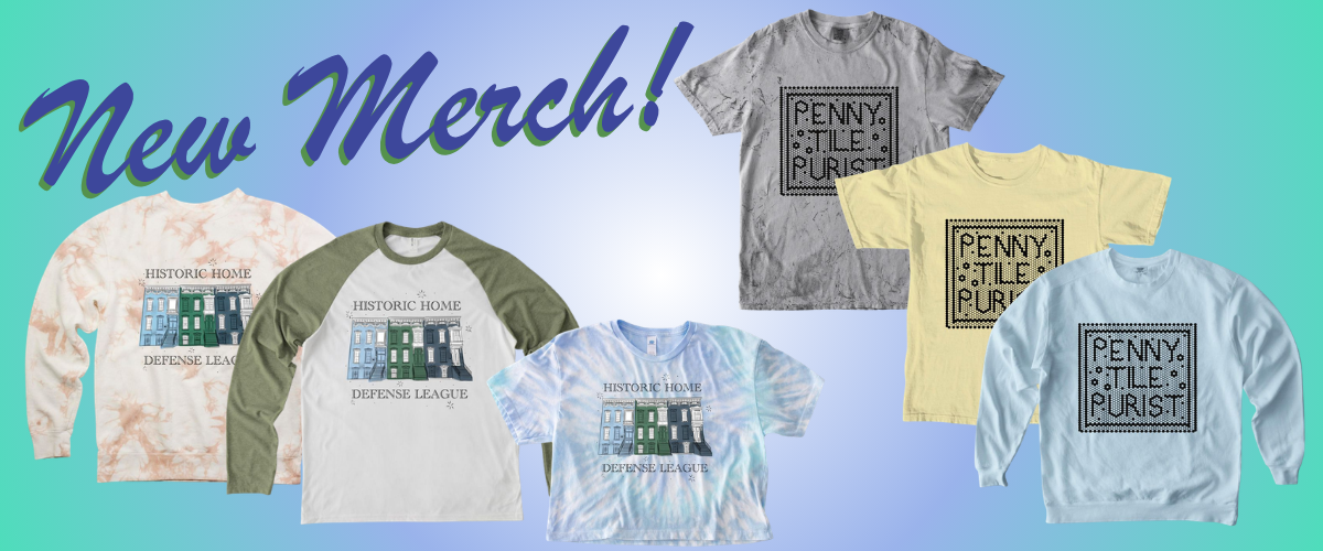 We are very excited to launch a Bonfire storefront with two shirt designs that will help you express to the world how much you care about historic places. Both the "Penny Tile Purist" and "Historic Home Defense League" designs come in a variety of styles and colorways (more than what’s pictured here!). This first campaign will last until Monday, April 20 — order yours today to make sure you get one! And if you’re a member, you can get a discount (email Kaitlyn Robitaille for your promo code).